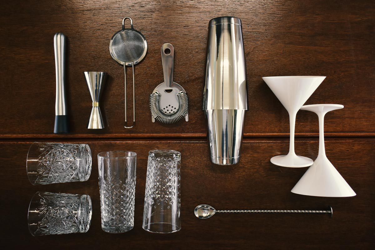 Includes shaker, jigger, muddler, and stirrer in a compact kit.